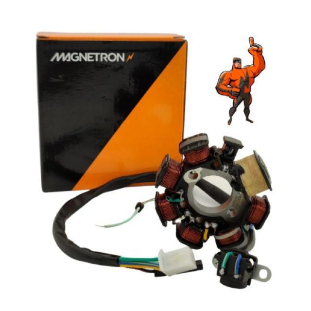 O estator tem a função de gerar energia para o sistema de carga de bateria e iluminação (painel, farol, lanterna traseira, piscas dianteiros e traseiros).