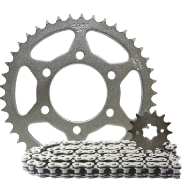 1 - Kit Relação Transmissão(Corrente Coroa e Pinhão) Aço 1045 - marca Starke